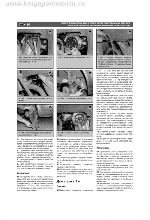 - Ремонт верхнеклапанных бензиновых двигателей двумя распредвалами верхнего расположения (DOHC) без извлечения из моторного отсека